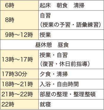 研修所の一日の日程は別掲の通りですが、こうした研修所での安定した生活リズムが実習先(企業)でも生かされていきます。
