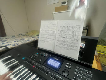 須藤社長のご家族が以前使っていたキーボードを1年前に譲って頂き、好きな音楽をスタートしました。